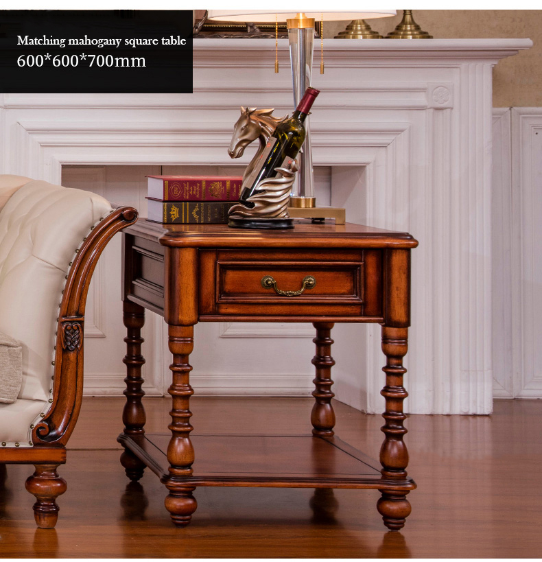 A side table set from American Retro Sofa. Still with the same manufacturing materials, the quality of the Matching Mahogany Square Table is very good. The harmonious finishing color also makes the American Retro Sofa set complement the beauty of the room.