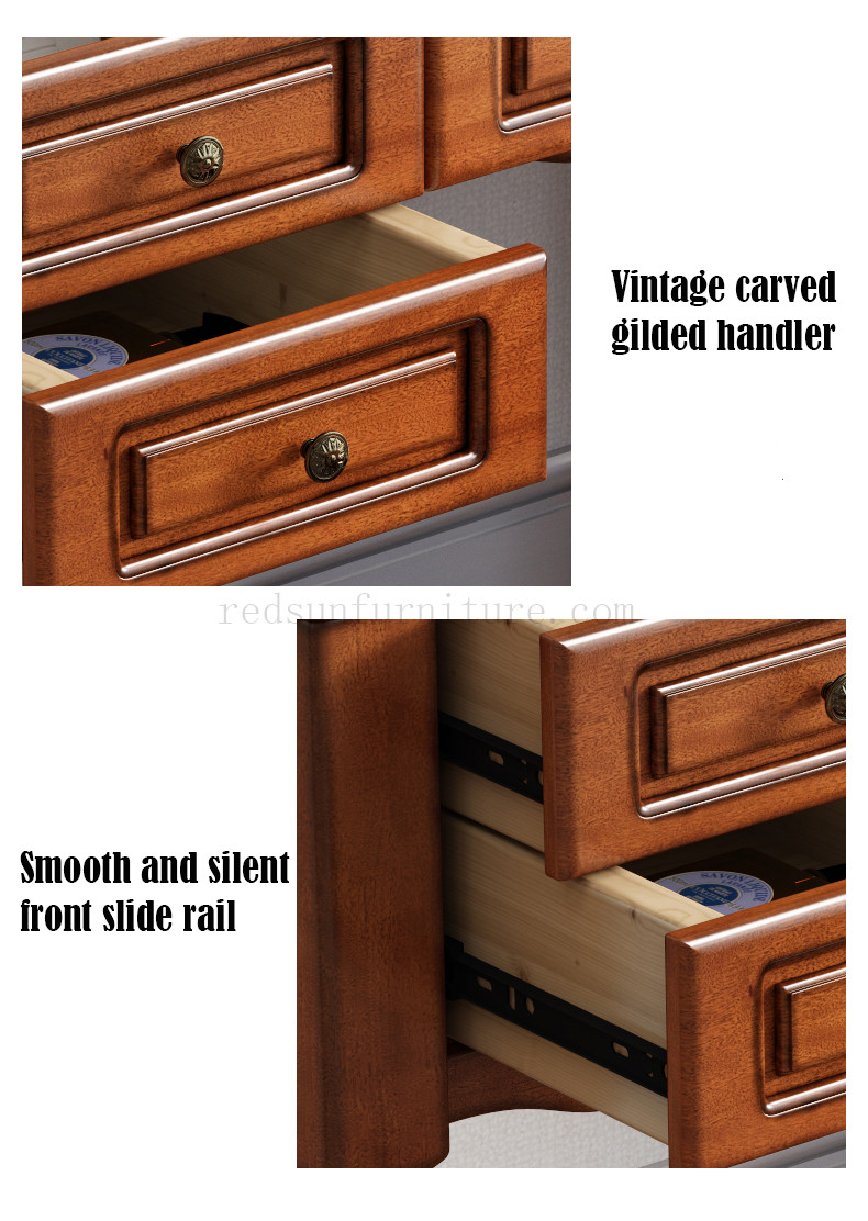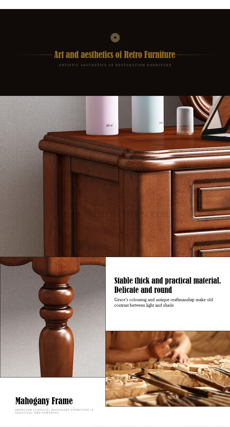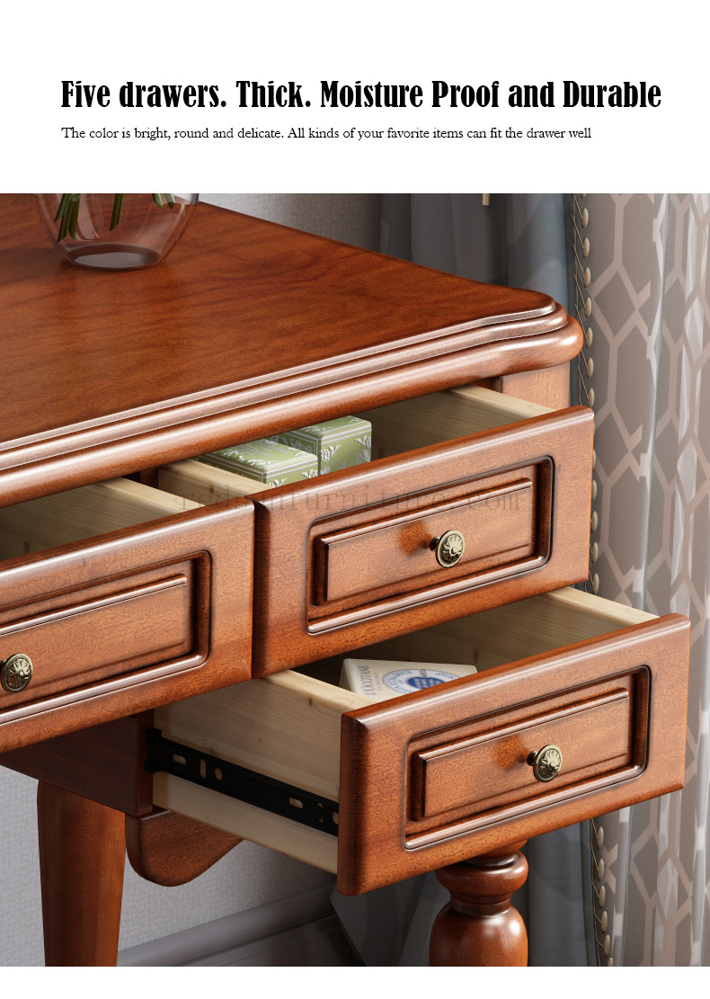 In addition to the use of sliding rails with quality materials, the drawers of American Retro Dressers use special handles made of quality brass. This handle has classic carvings that further strengthen the luxurious impression of the American Retro Dressing Table.