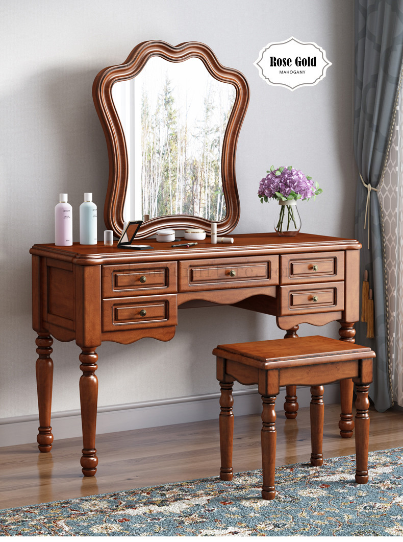 Painting with quality finishing materials does not make the color fade quickly in a long period of use. The selection of a beautiful Rose Gold color that looks very natural adds to the impression of a “classic” and a thick retro’s feel. The nuance is like a royal from the past, so that when you make a dress using an American Retro Dressing Table it looks very luxurious. The distinctive color of wood is undeniably one of the best colors for furniture.